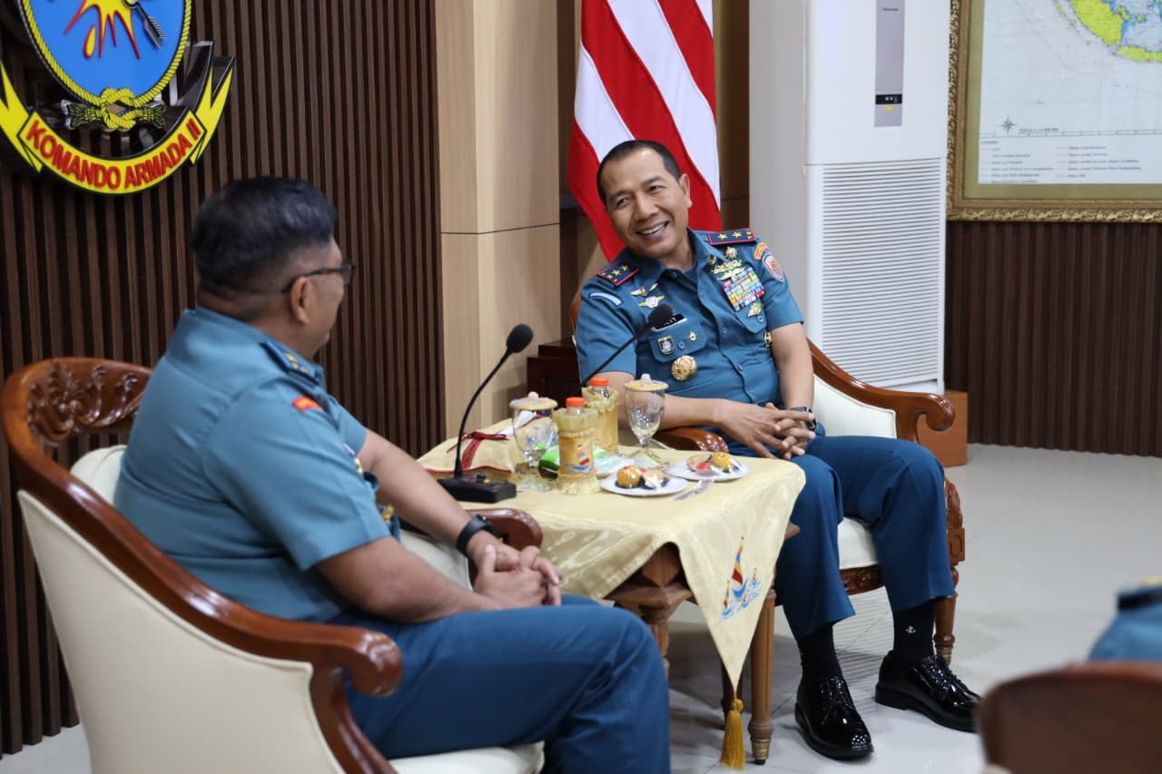 Kepala RSPAL dr. Ramelan Laksma TNI dr. Imam Hidayat, Sp.S., FINA., melaksanakan kunjungan kehormatan kepada Panglima Koarmada II Laksda TNI I.G.P. Alit Jaya, S.H., M.Si., bertempat di Ruang VIP Nala, Mako Koarmada II, Ujung, Surabaya. Kamis,(13/11/2025).