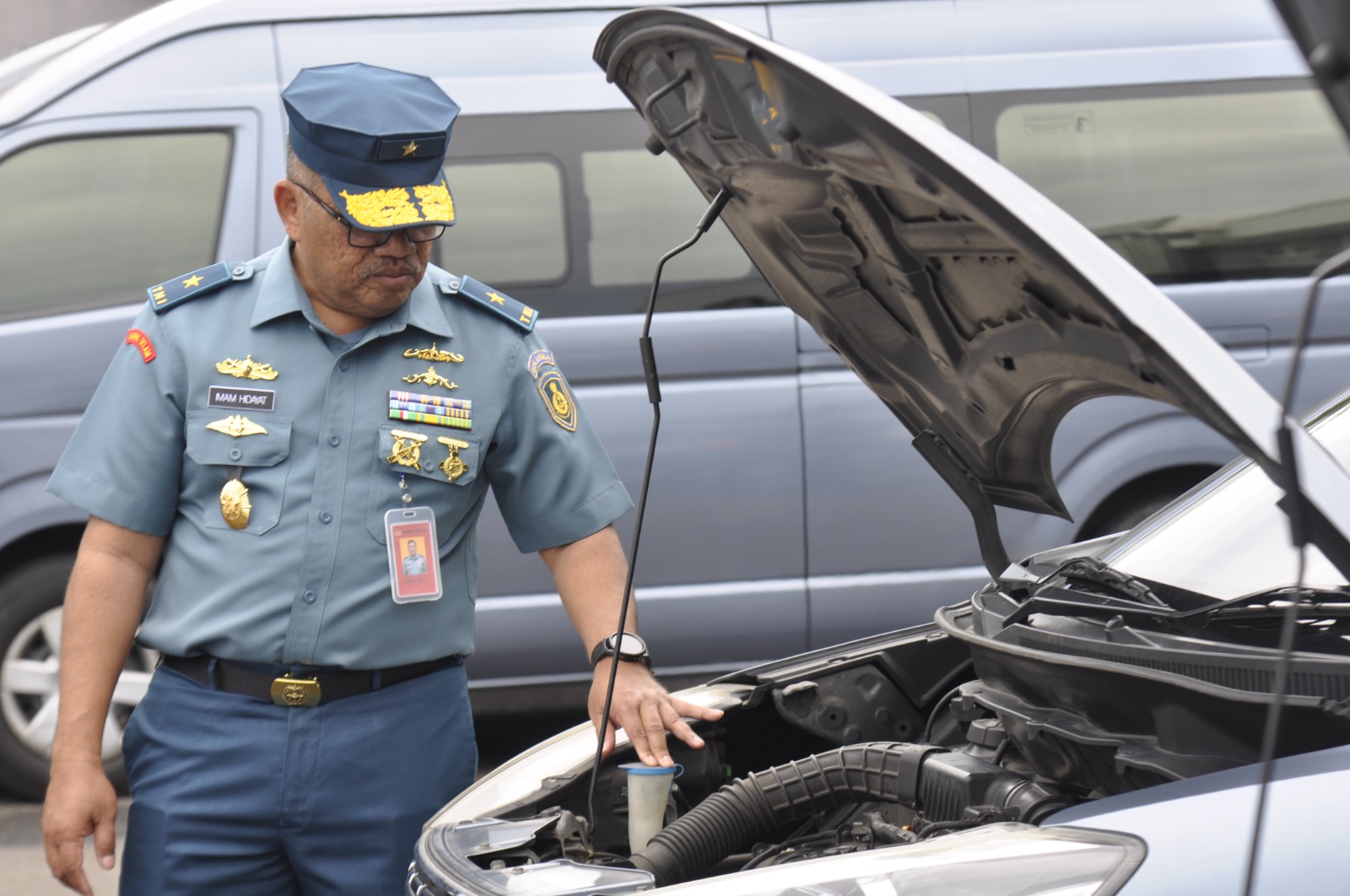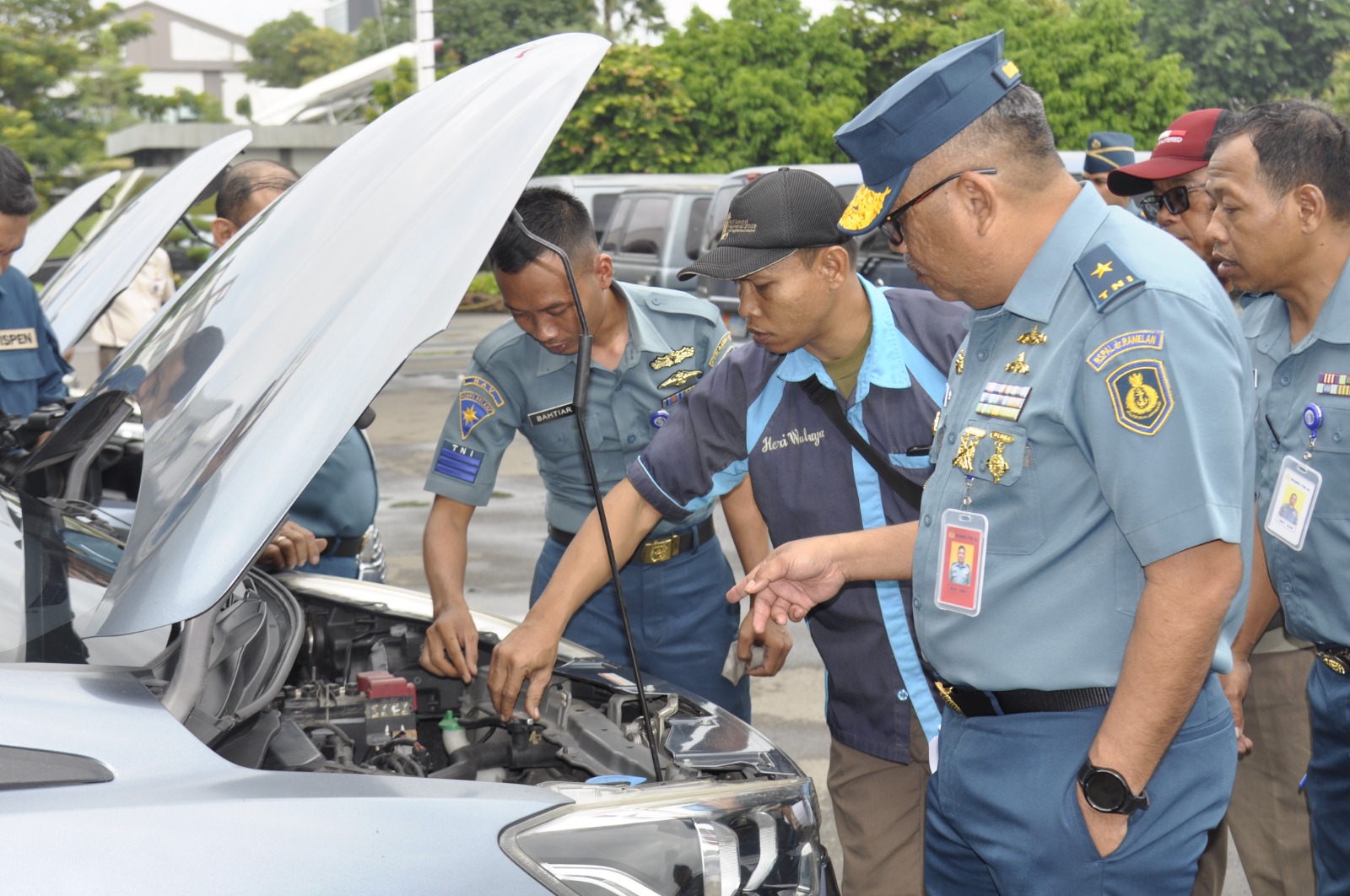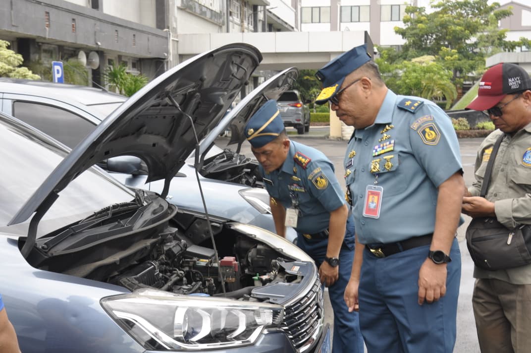 Kepala RSPAL dr. Ramelan Laksma TNI dr. Imam Hidayat, Sp.S., FINA., memeriksa secara langsung kendaraan dinas mulai kondisi fisik dan kelengkapan kendaraan hingga administrasi kendaraan.