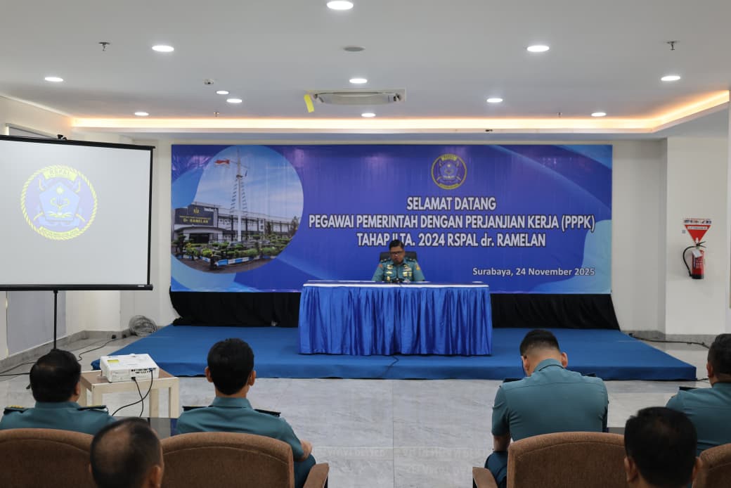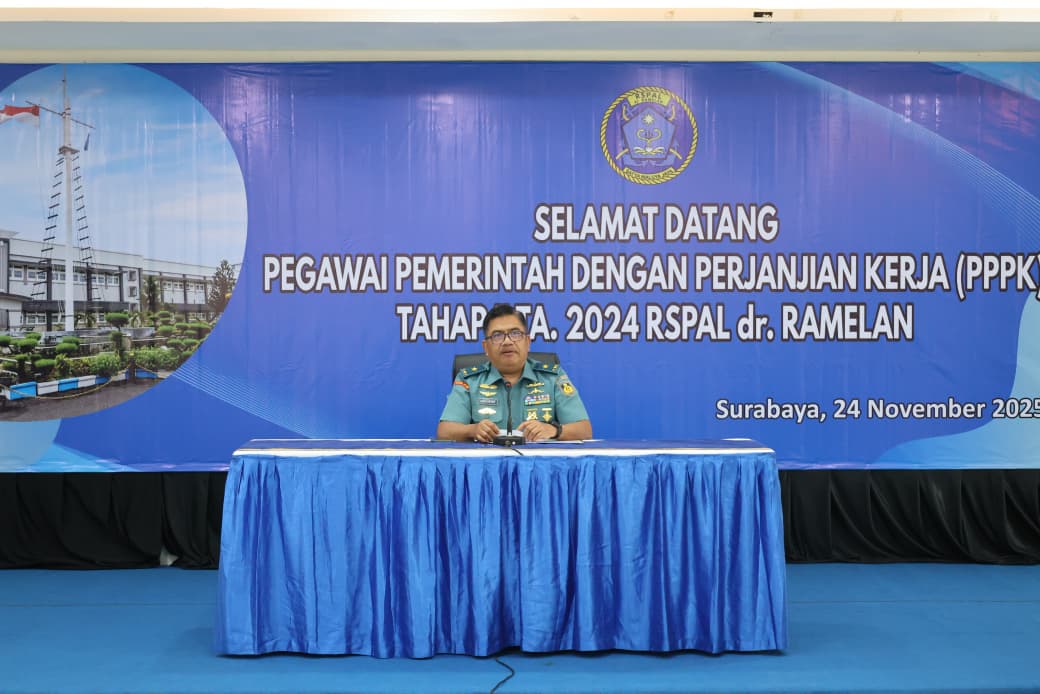 Kepala RSPAL dr. Ramelan Laksma TNI dr. Imam Hidayat, Sp.S., FINA., resmi menerima 41 Pegawai Pemerintah dengan Perjanjian Kerja (PPPK) Tahap II Kementerian Pertahanan TA. 2024 bertempat di Aula Lt. 1 Gedung Pulau Miangas RSPAL dr. Ramelan, Surabaya. Senin,(24/11/2025).