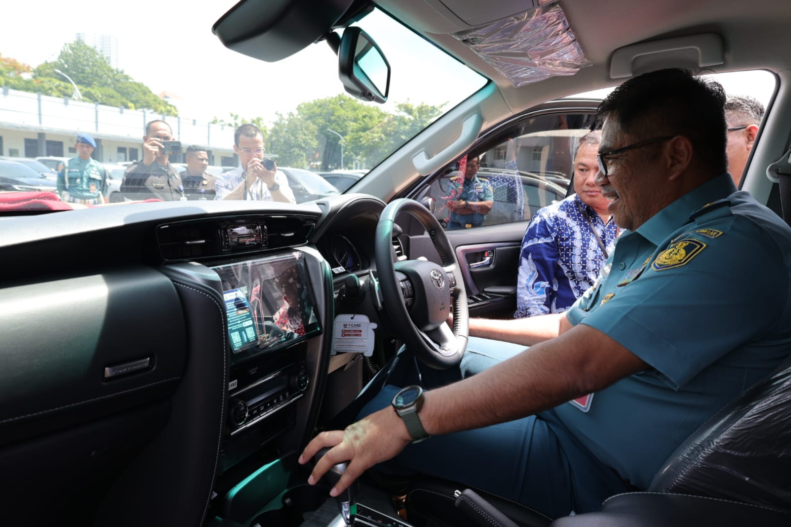 Acara penyerahan, diawali dengan penandatanganan berita acara serah terima dilanjutkan dengan penyerahan secara simbolis kunci kendaraan, dan acara diakhiri dengan peninjau langsung unit kendaraan operasional yang diserahkan.