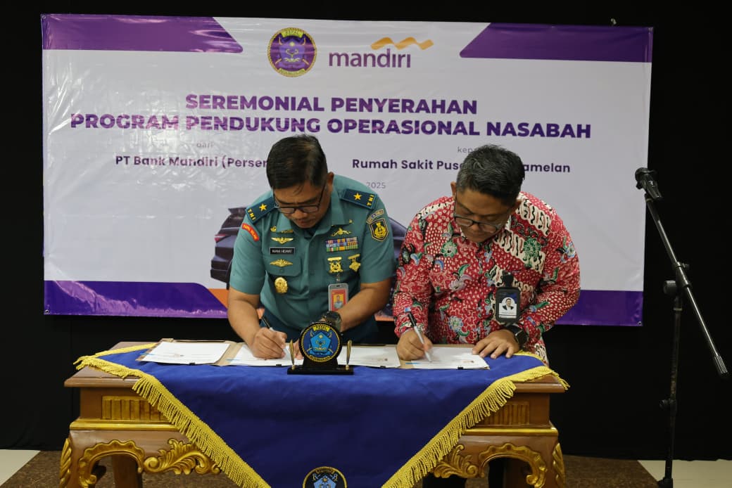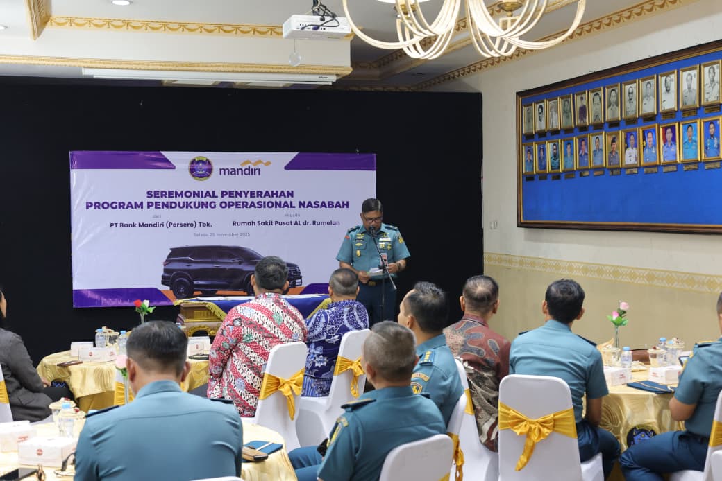 Kepala RSPAL dr. Ramelan Laksma TNI dr. Imam Hidayat, Sp.S., FINA., menerima bantuan operasional dari PT. Bank Mandiri melalui program Corporate Social Responsibility Bank Mandiri yang diserahkan Senior Vice President Government Project PT. Bank Mandiri Bapak Hendrianto Setiawan, bertempat di Loungeroom Mako RSPAL dr. Ramelan, Surabaya. Selasa,(25/11/2025).