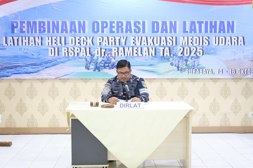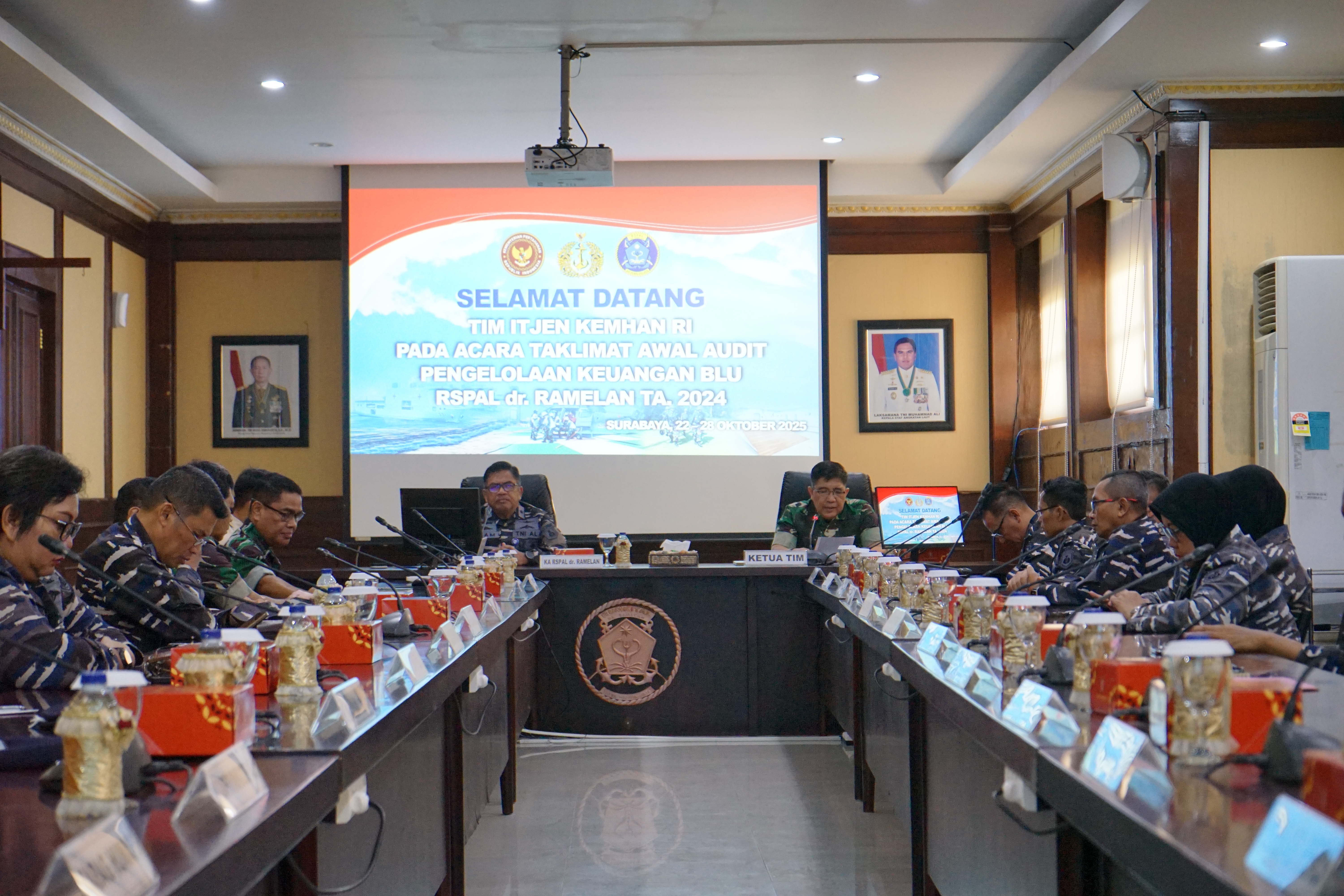 Kepala RSPAL dr. Ramelan Laksma TNI dr. Imam Hidayat, Sp.S., FINA., membuka Taklimat Awal Audit Inspektorat Jenderal Kementerian Pertahanan (Itjen Kemhan) Tahun 2025 yang dilaksanakan di Ruang Rapat Utama RSPAL dr. Ramelan, Surabaya. Rabu, (22/10/2025).