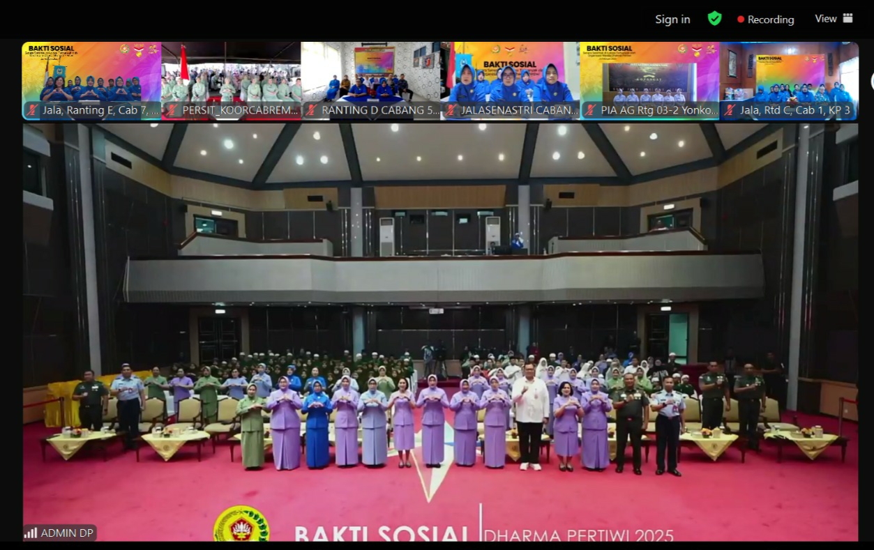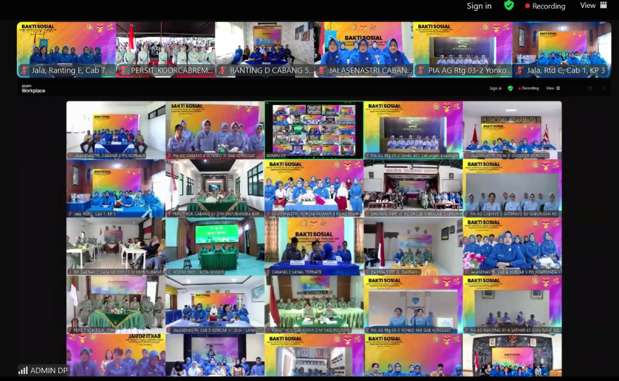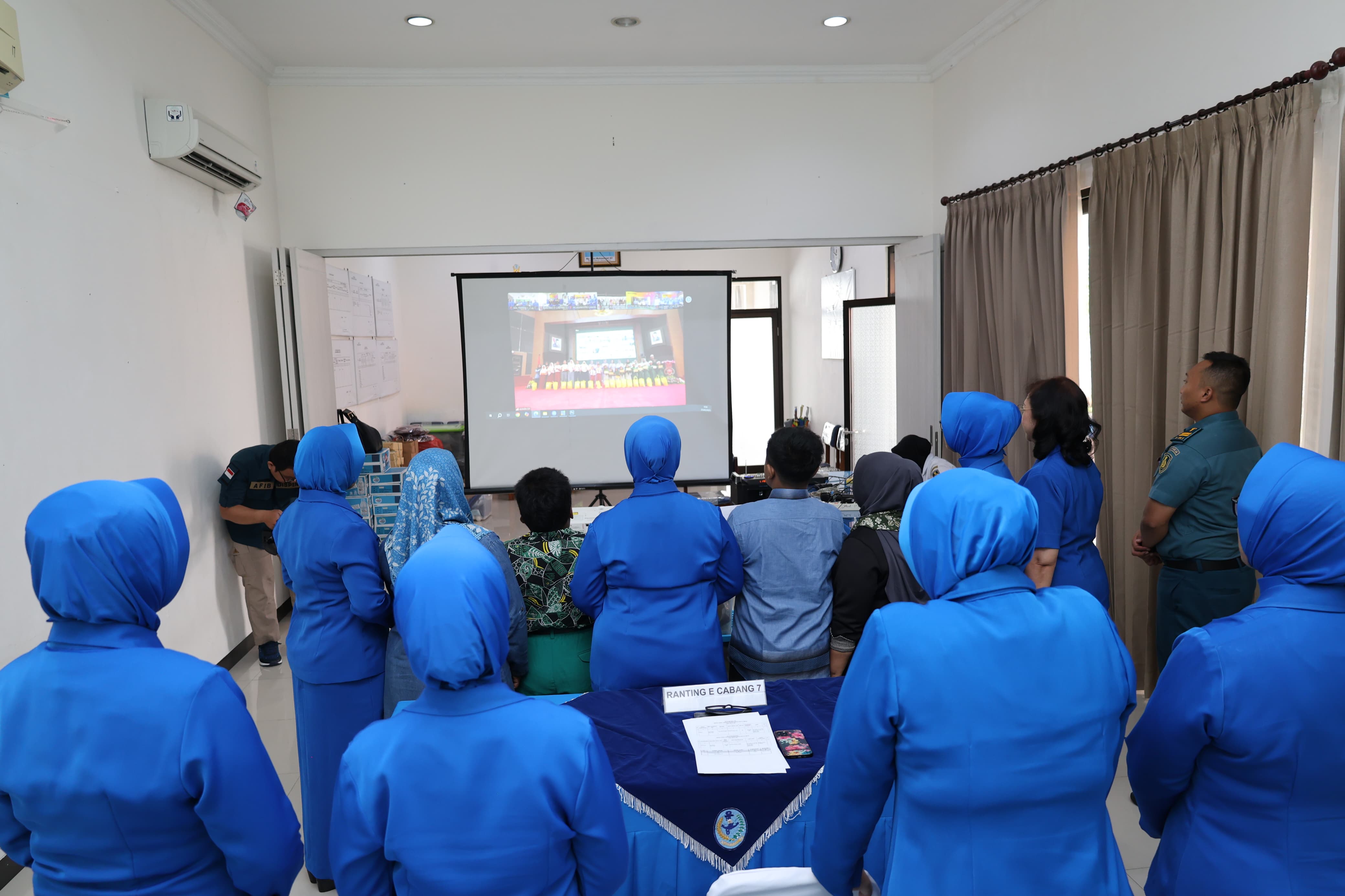 Ketua Ranting E Cabang 7 Gabungan Jalasenastri Mabesal Ny. Ida Sulaiman didampingi Wakil Ketua Ranting E, Pabinhar dan pengurus Jalasenastri Ranting E Cabang 7 Gabungan Jalasenastri Mabesal, turut serta secara virtual dalam pelaksanaan bakti sosial yang diselenggarakan dalam rangka menyambut peringa...