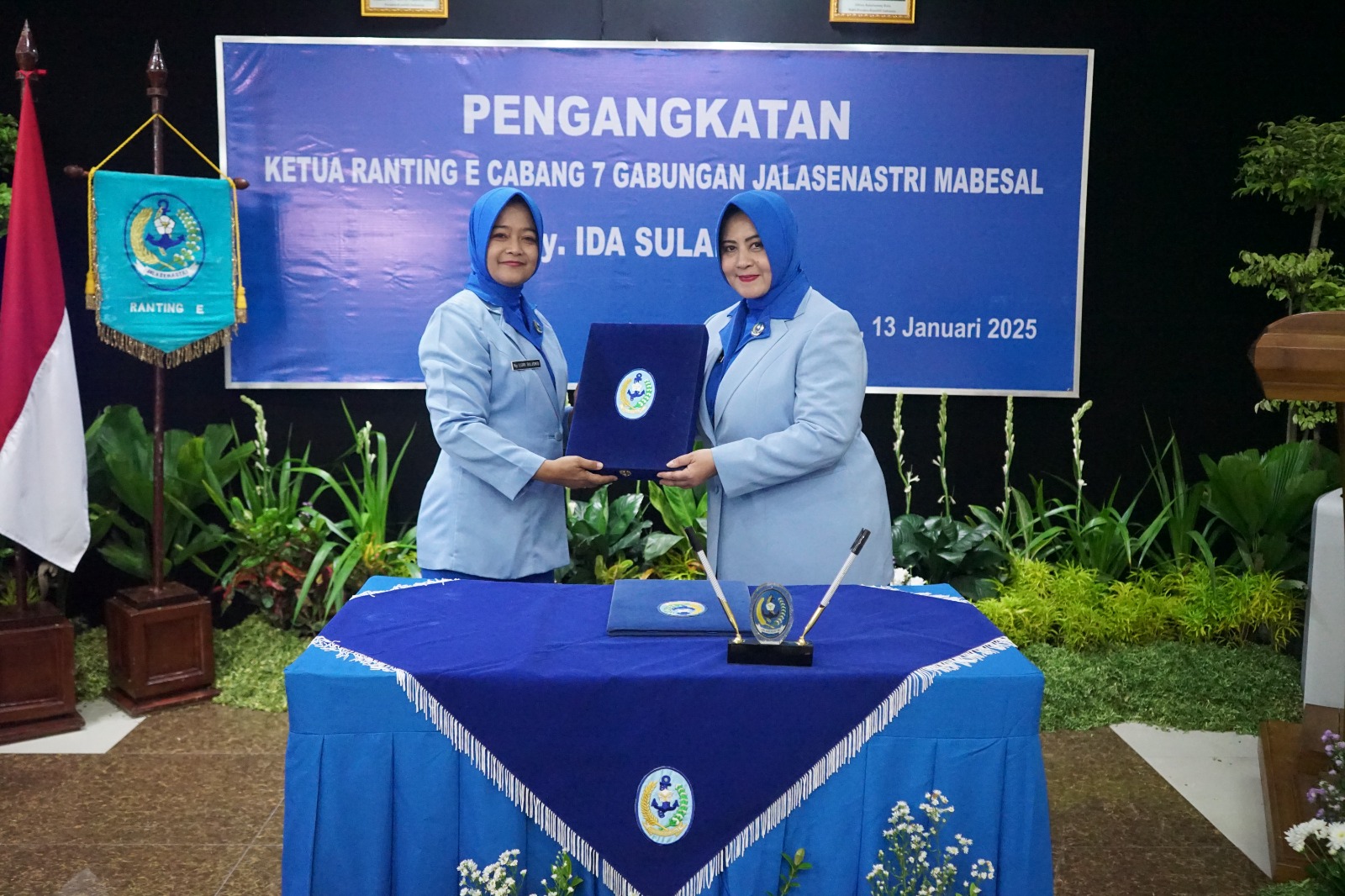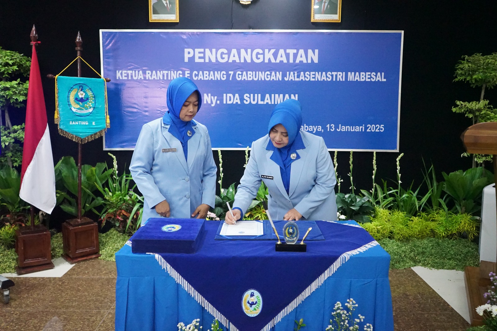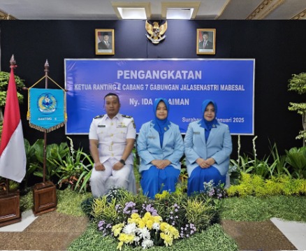 Ketua Cabang 7 Gabungan Jalasenastri Mabesal Ny. Luri Sujoko secara resmi mengukuhkan Ny. Ida Sulaiman sebagai Ketua Ranting E Cabang 7 Gabungan Jalasenastri Mabesal dalam sebuah acara yang dilaksanakan di Loungeroom RSPAL dr. Ramelan, Surabaya. Senin,(13/01/2025).