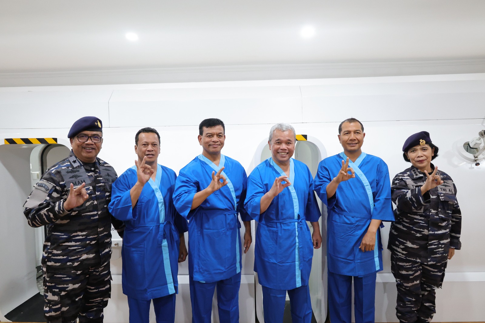 Dalam rangka memperingati Hari Kesehatan Angkatan Laut (Harkesal) Ke-77, Kepala RSPAL dr. Ramelan Laksma TNI dr. Imam Hidayat, Sp.S., FINA., mewakili Kapuskesal Laksda TNI dr. Sujoko Purnomo, Sp.B., menyematkan Brevet Kehormatan Kesehatan Penyelaman dan Hiperbarik bertempat di Gedung Klinik Terapi H...